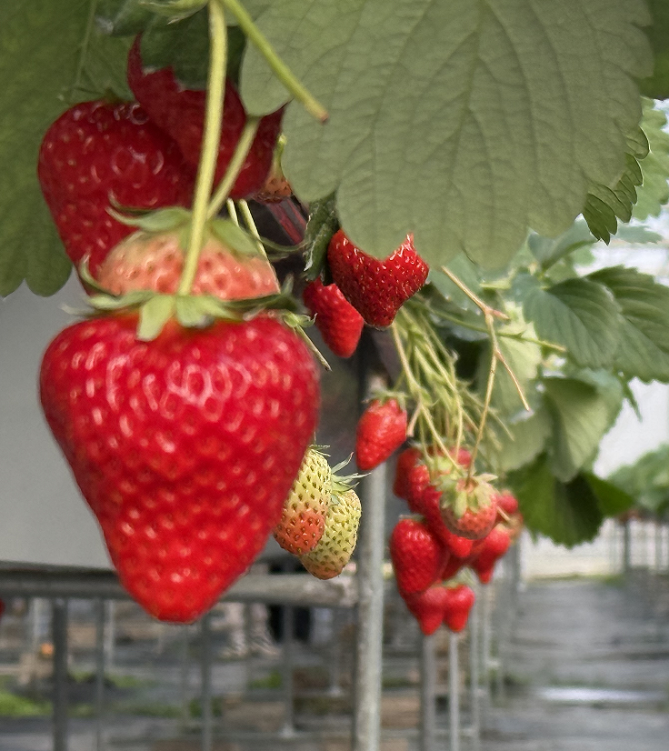 采摘大棚矗立在滕頭景區(qū)旁,顯得格外矚目,大棚里一縱縱翠綠的葉子上冒出了無(wú)數(shù)個(gè)鮮紅欲滴的小果實(shí),透著勃勃生機(jī),湊近一聞,濃郁的果香撲面而來(lái)。此時(shí)大家被眼前大大小小、顏色誘人的草莓吸引,忍不住的將酸酸甜甜的草莓摘了直接丟進(jìn)嘴里,甜甜的草莓汁在嘴里、心里流淌,大家一邊品嘗一邊采摘,臉上洋溢著燦爛的笑容。
